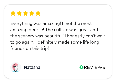 - Dedicated Trip Coordinator: one person to guide your entire journey, even when you’re overseas, if you decide you want to add anything onto your trip, you have the support from beginning to end.